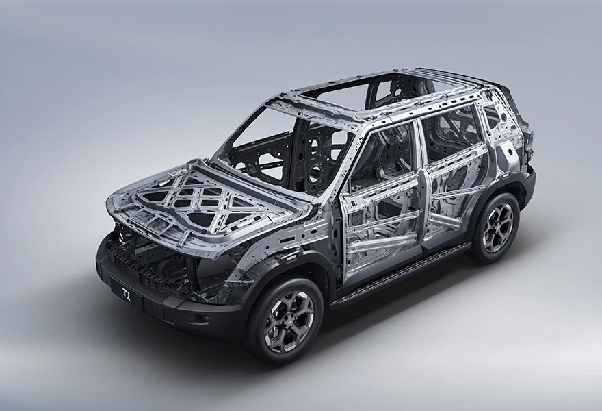Кузов Т1 более чем на 85% состоит из высокопрочной стали c использованием лазерной сварки. Крыша рассчитана на нагрузку до 150 кг в динамике и 300 кг в статике, такая усиленная конструкция повышает безопасность в случае столкновений. Максимальная масса прицепа составляет 1 600 кг.